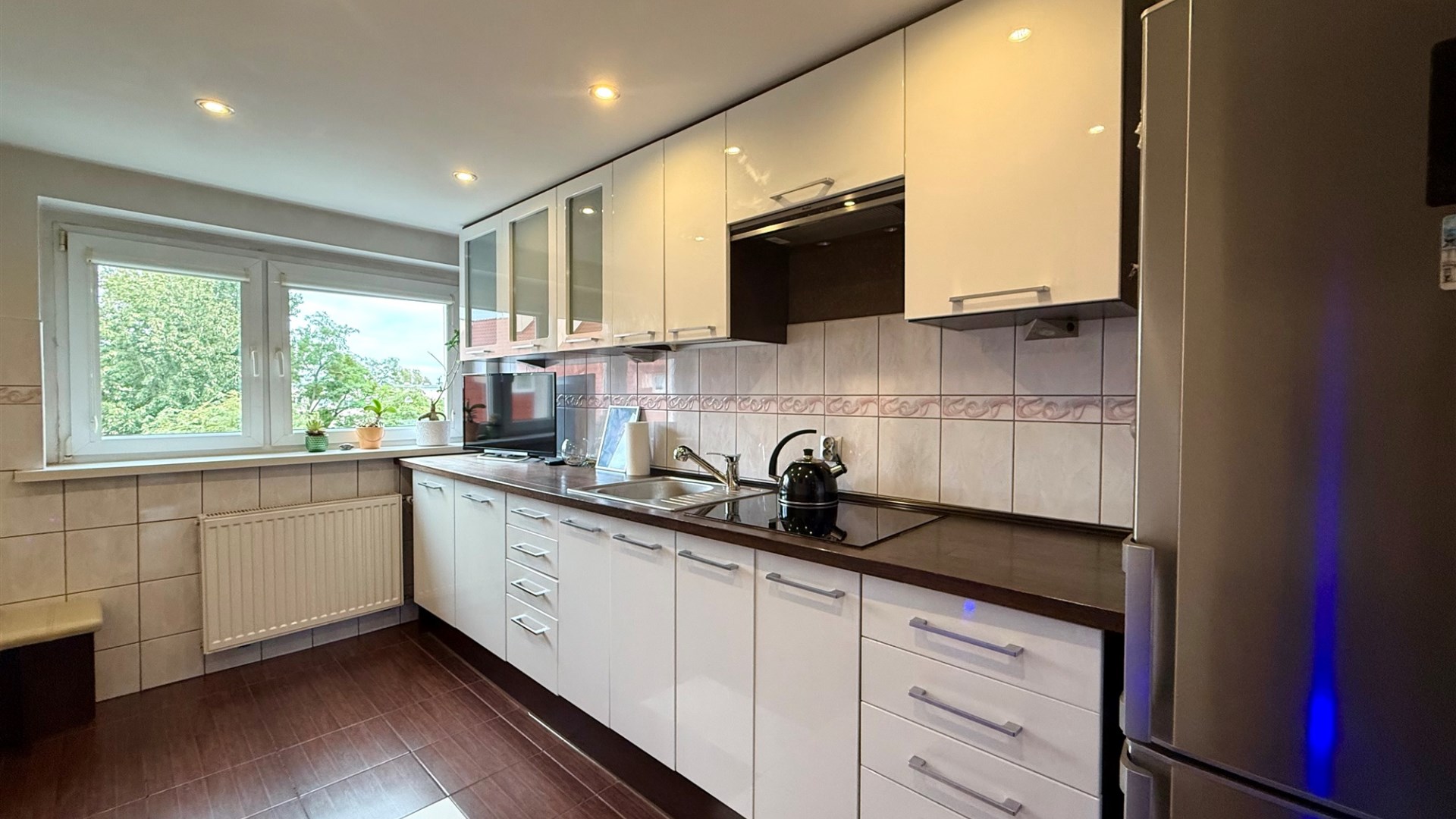 Mieszkanie cechuje bardzo duży pokój dzienny, duża sypialnia oraz duża, oddzielna kuchnia z jadalnią. Z tyłu budynku znajduje się wjazd ze szlabanem na pilot, na przyległy i zasobny parking samochodowy widoczny z okien mieszkania.