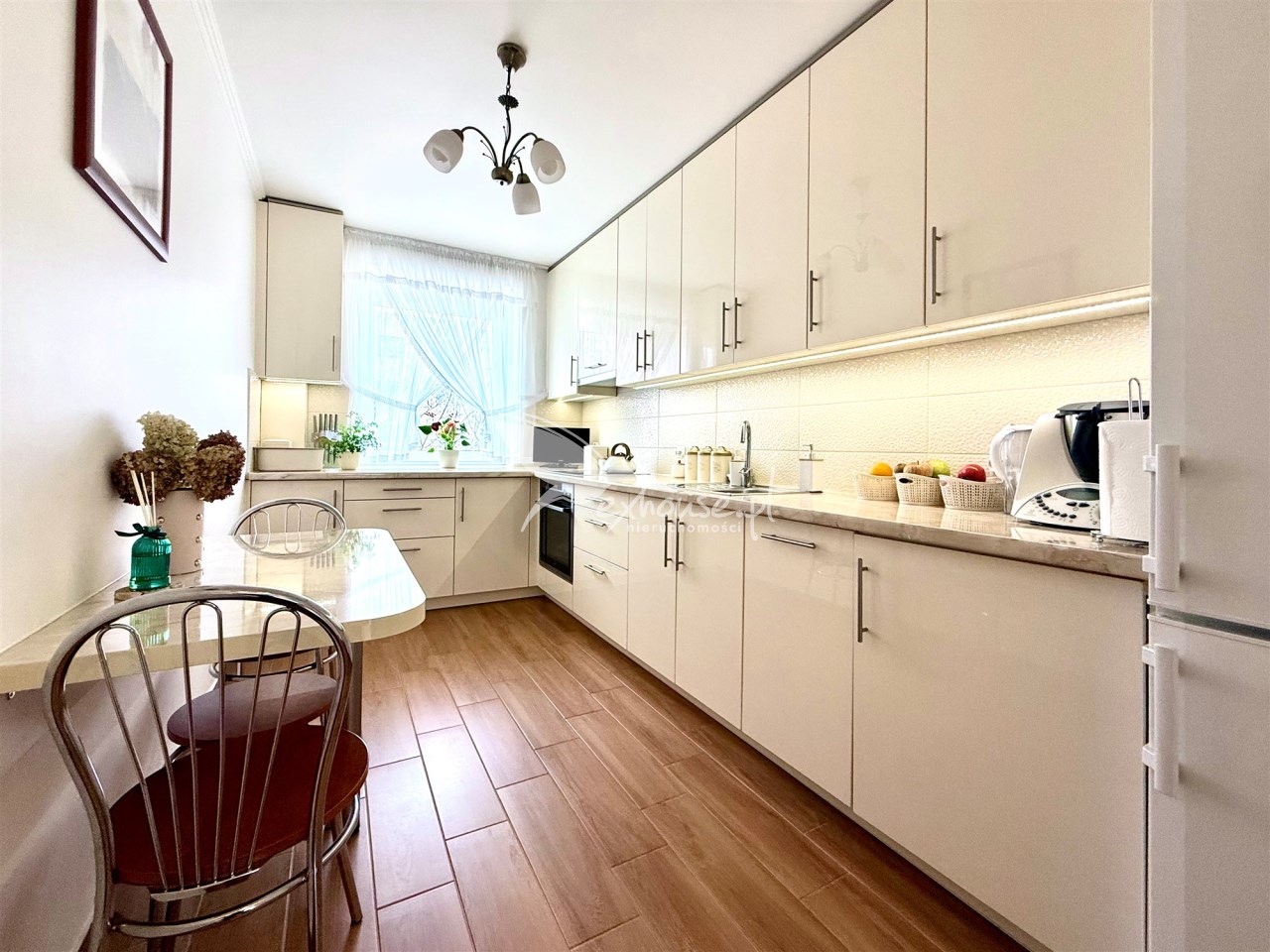 Mieszkanie pięknie wykończone, liczne zabudowy i meble na wymiar, podłogi, gładzie, wyposażenie kuchni, łazienki i toalety. W mieszkaniu pozostają wszystkie zabudowy widoczne na fotografiach, wyposażenie i umeblowanie łazienki i toalety, zabudowa kuchni z wyposażeniem, pozostałe wyposażenie pokoi do ustalenia