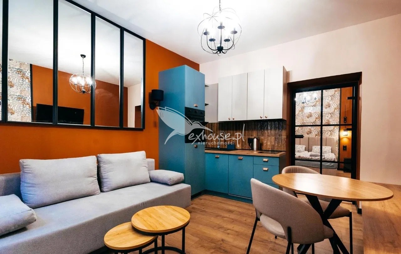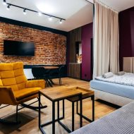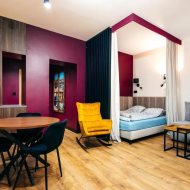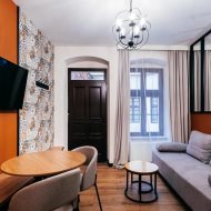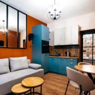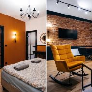 Apartamenty urządzone w spójnym, butikowym stylu – z wyrazistą kolorystyką, designerskim oświetleniem i wysokim standardem wykończenia.